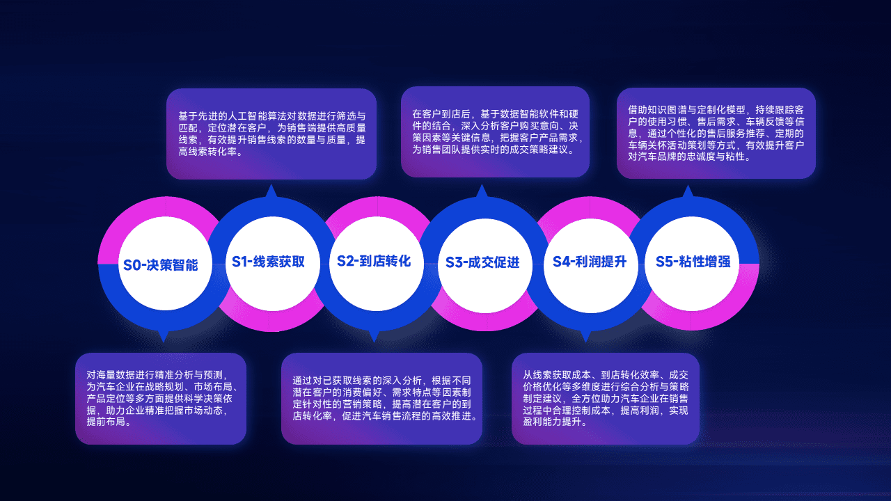 通过拓宽潜在客户来源、、优化线索分配并提高到店转化率,,,以增强销售效率。。同时,,利用线索数据不断优化分析模型,,有效提升转化率,,扩大营销影响力。。。